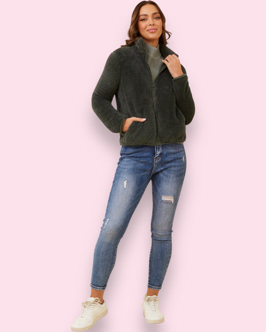 Teddy Fur Zip Jacket - Deep Forest