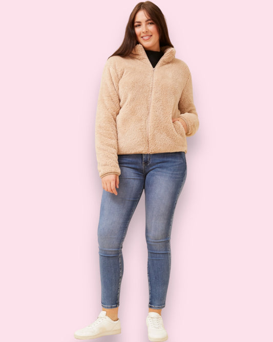 Teddy Fur Zip Jacket - Beige