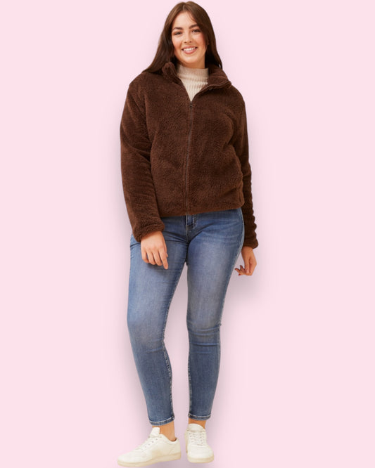 Teddy Fur Zip Jacket - Chocolate