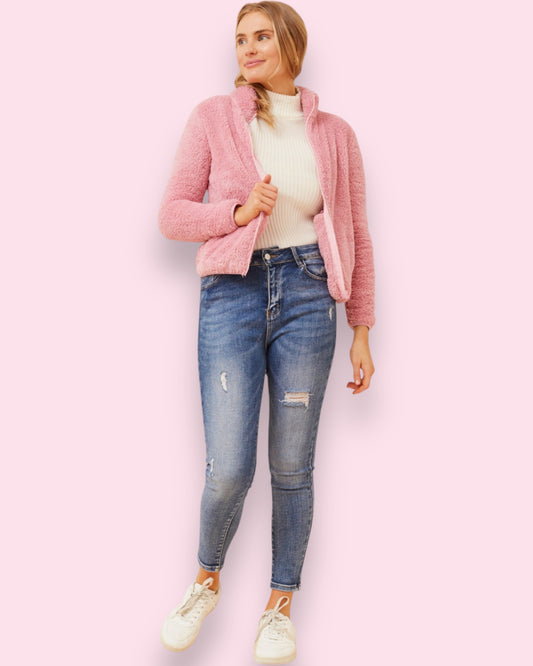 Teddy Fur Zip Jacket - Rose Pink
