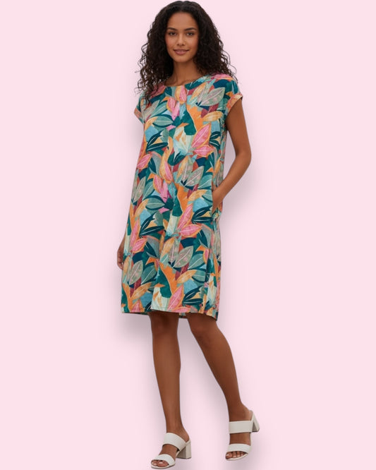 Selena Shift Dress - Multi Blue Leaf