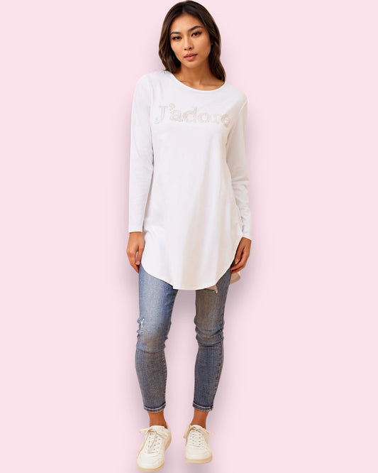 J’Adore Long Sleeve Top - White