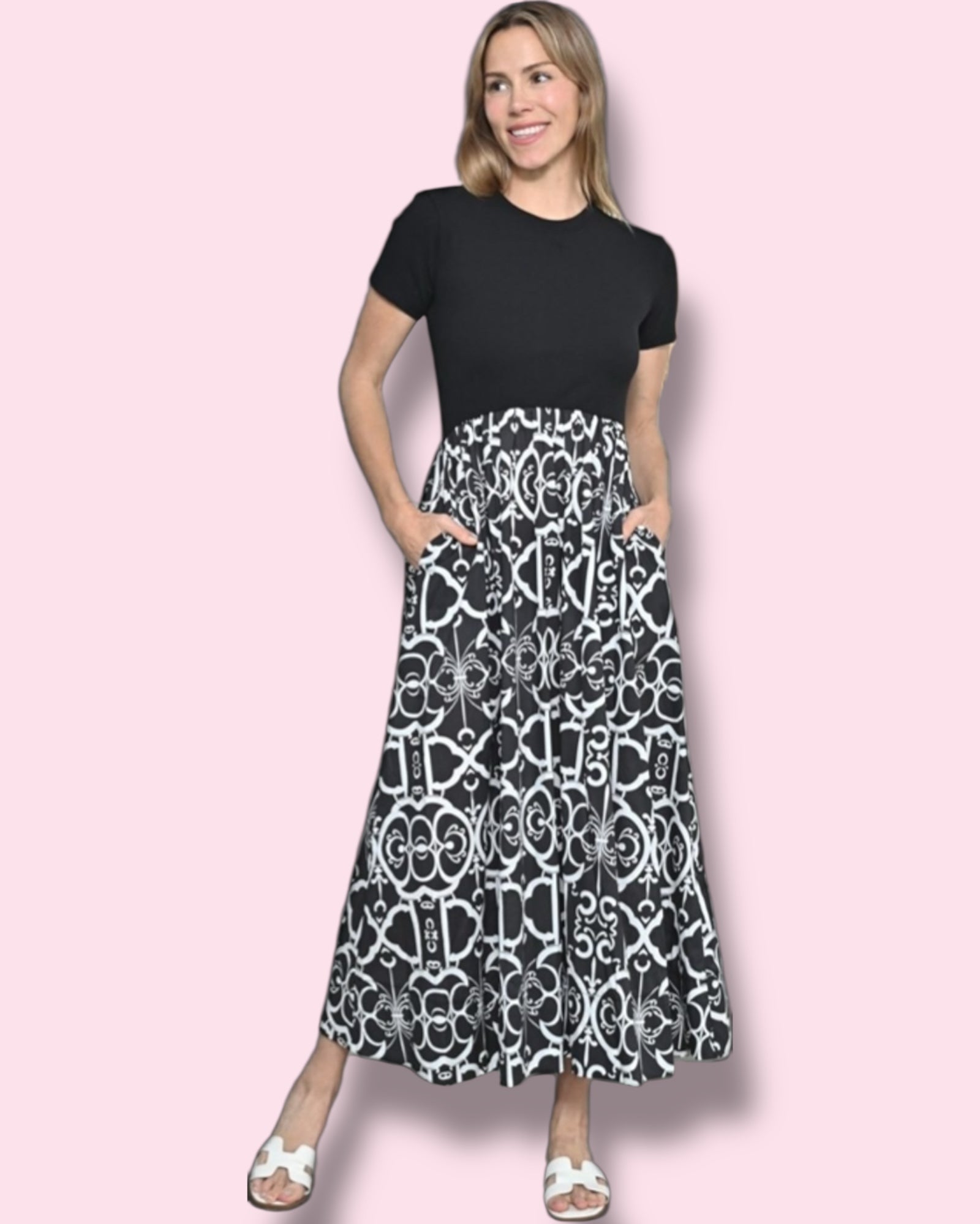 The Gemma Dress brings effortless style with a playful contrast between a relaxed tee-style top and a flowy tiered skirt. Crafted from soft rayon, this short-sleeve number features practical side pockets—because looking good shouldn't mean sacrificing function.