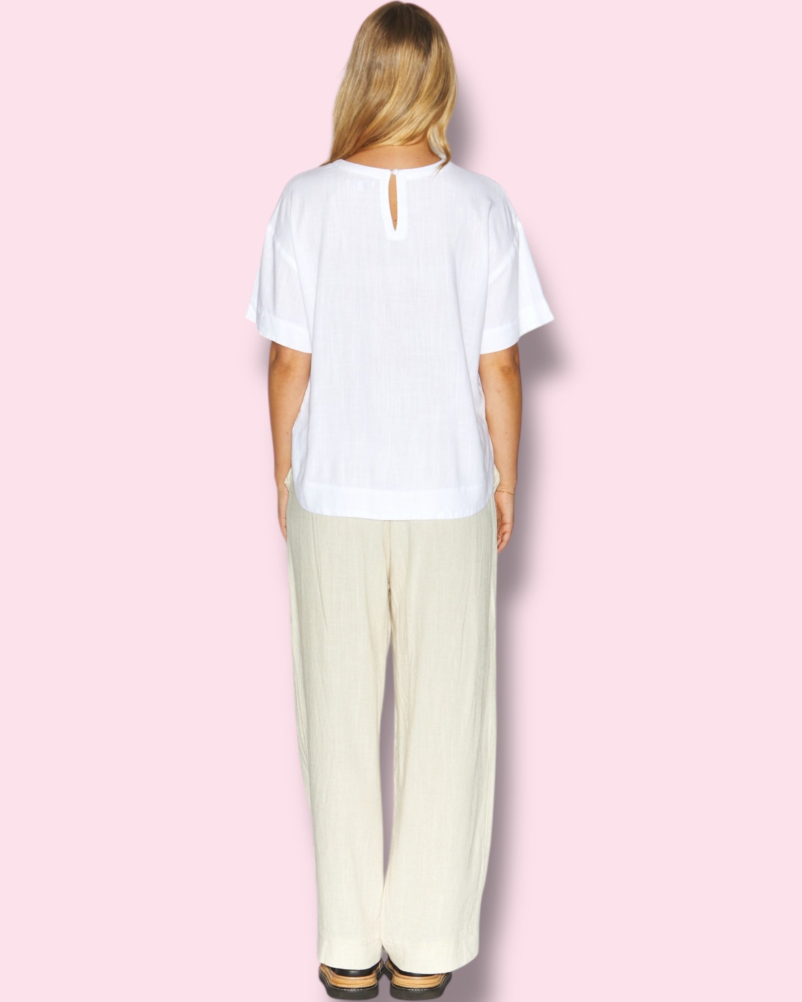 Slip into comfort with the Helena Pants in Natural. These relaxed-fit trousers feature a long length that skims beautifully, complete with practical side pockets and a gentle elasticised waist for all-day ease.