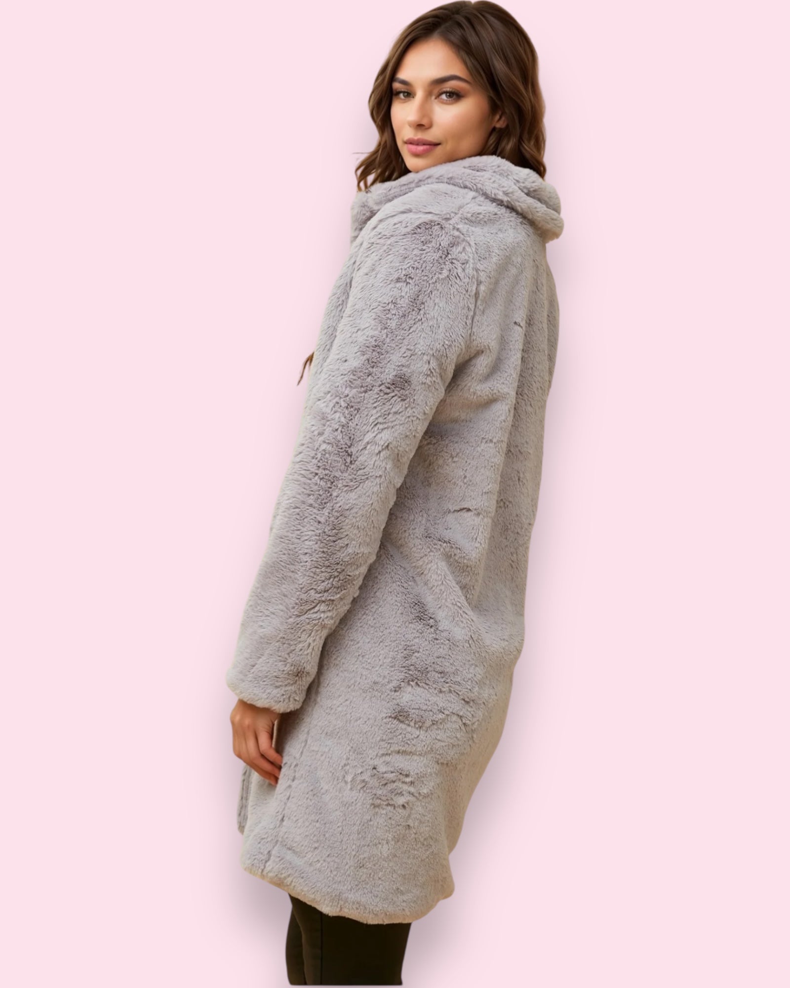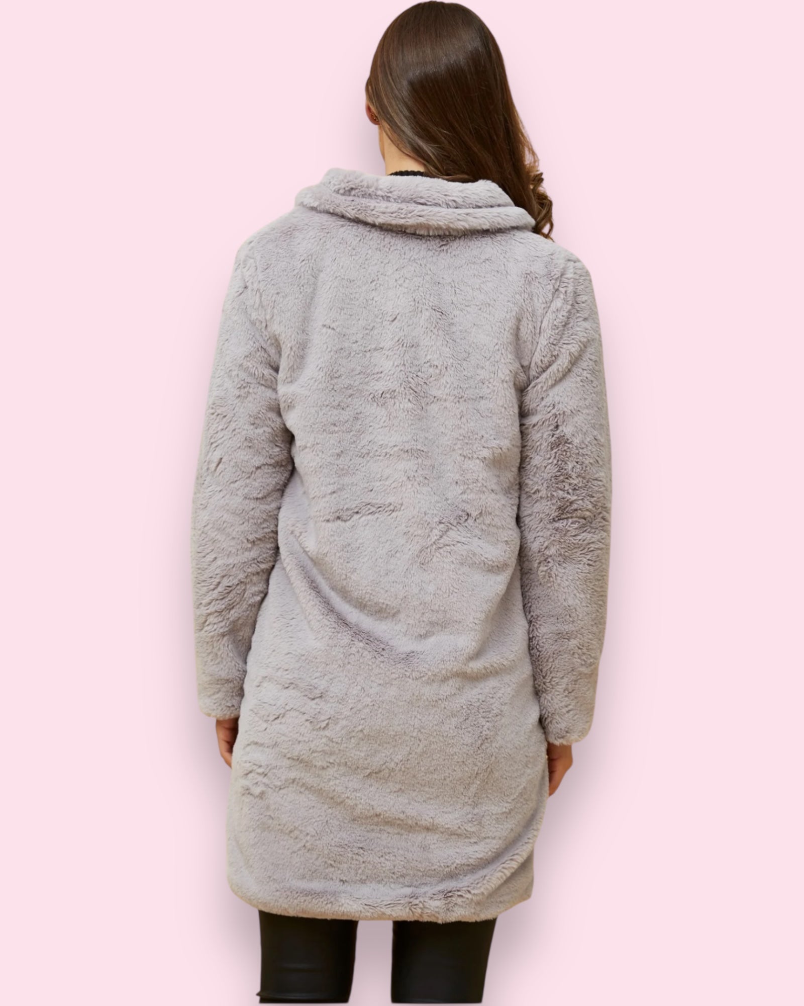 Wrap yourself in playful luxury with the Sharon Faux Fur Coat. Featuring a wide statement lapel collar, long sleeves, and an edge-to-edge opening with hook and eye closure, this mid-thigh length coat brings charm and warmth. Practical side pockets add functionality without sacrificing style.